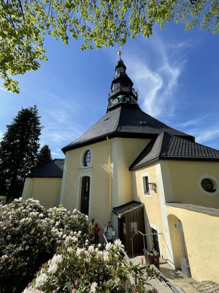 Nachdem wir uns beim Mittagessen gestärkt hatten, wurde straff bergab wandernd wieder Seiffen erreicht. Dort haben wir uns zunächst in der Schauwerkstatt selbst als "Männelmacher" ausprobiert, bevor es weiter durch das Ortszentrum zur weitbekannten Seiffener Kirche und deren Besichtigung ging.